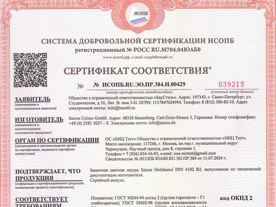 Новый 2026 год наша компания начала с того, что обновила сертификаты пожарной безопасности для топовых продуктов Saicos – масляной краски Haus & Garten-Farbe и защитной цветной лазури Holzlasur.