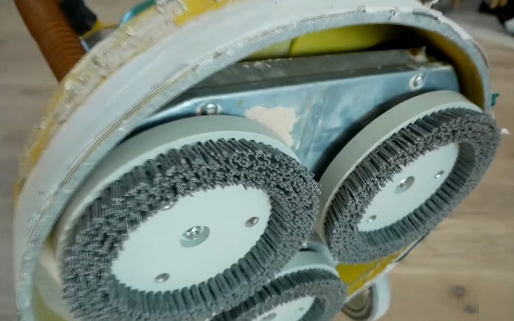 При работе с Trio во время брошюровки характер машины не изменяется. Если вы шлифовали пол такой машиной, то запросто сможете выполнить и структурирования паркета. Для этих целей используются 3 типа щеток – неоновая, медная, стальная. Они помогают достичь необходимой степени обработки паркета.