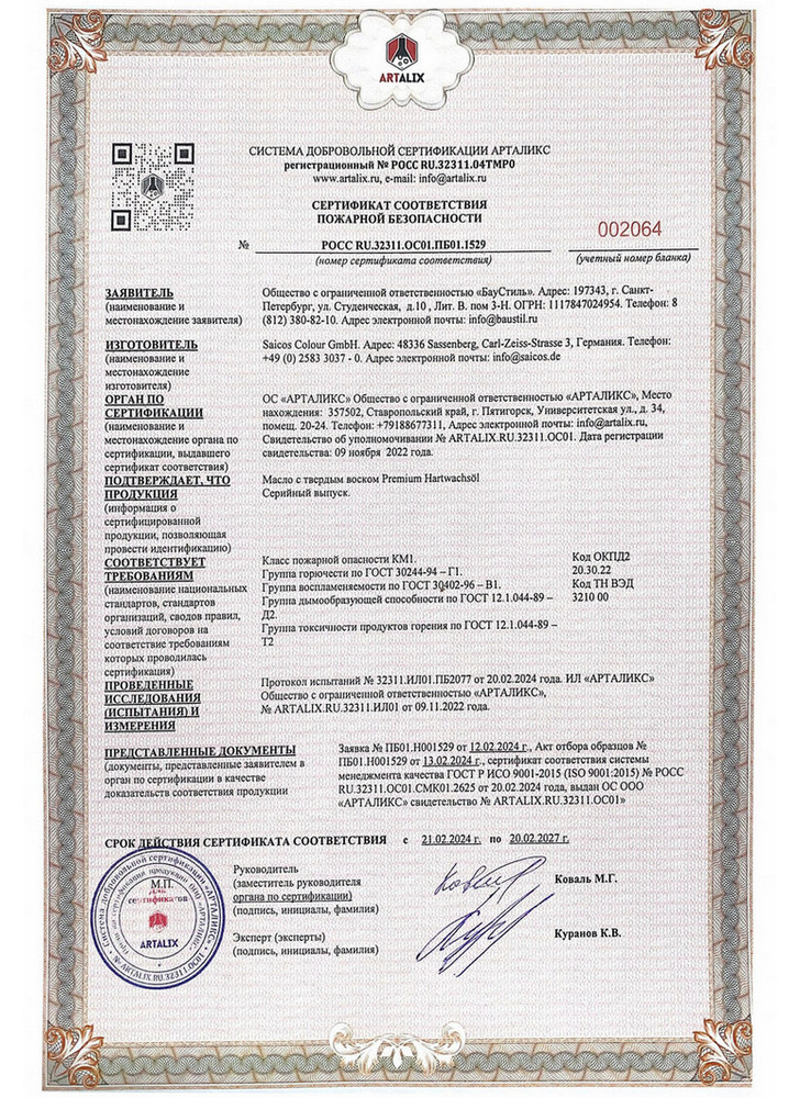 Когда дело касается огнезащиты, на кону стоит не только качество, но и ваша безопасность. Все упомянутые продукты Saicos обладают самым высоким уровнем пожарной безопасности, подтвержденным сертификатом КМ1. Это не просто стандарт – это гарантия того, что вы выбираете материалы, способные выдержать экстремальные условия. Класс КМ1 свидетельствует о минимальной пожароопасности, низком дымообразовании и неспособности распространять огонь.
