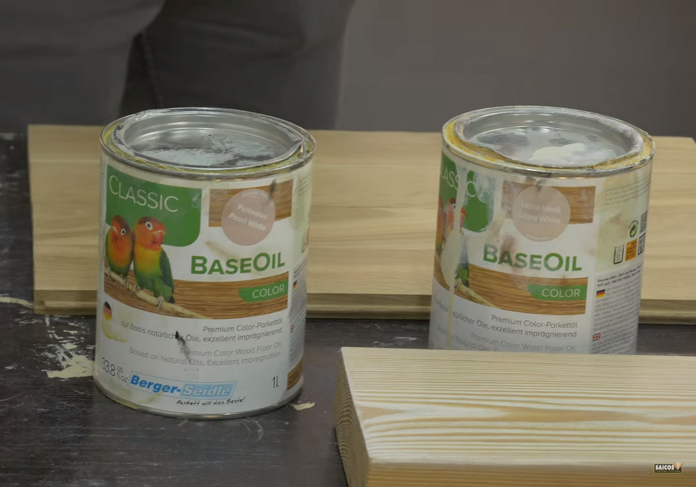 Вот какие масла мы используем для демонстрации белой тонировки паркета: