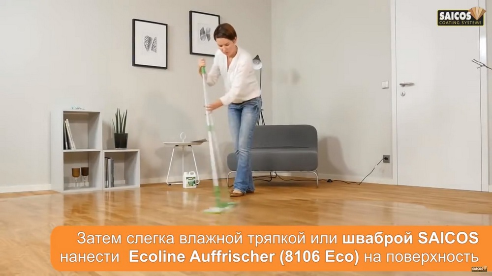 Для каждодневного применения рекомендуем использовать чистящий концентрат для влажной уборки EcoLine Wischpflegе, который подходит для любых покрытий. Расход концентрата – 2 колпачка на 5 л воды, то есть его нужно просто добавить в воду, которой вы моете полы.