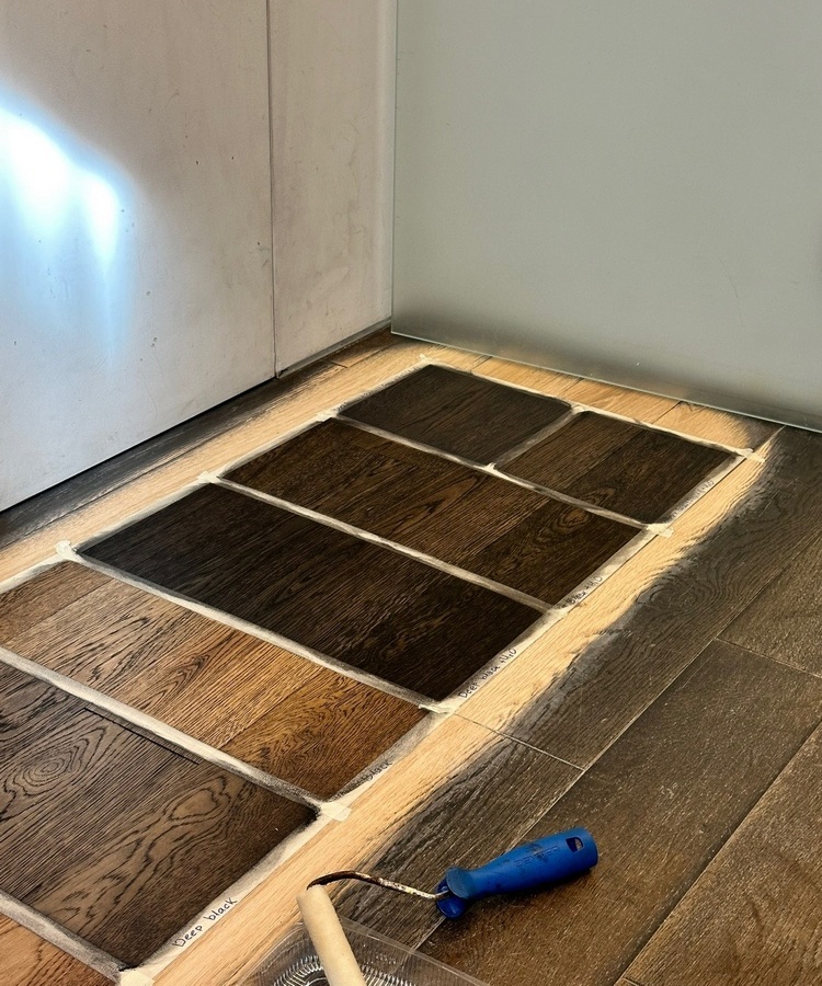 Для чего тогда нужны образцы или веера с цветовыми палитрами, каталоги? Для того, чтобы клиент мог приблизительно показать, в какую сторону он стремится, какой цвет он хочет получить. А дальше задача специалистов – сделать выкраски по его запросу и желательно на паркете клиента.