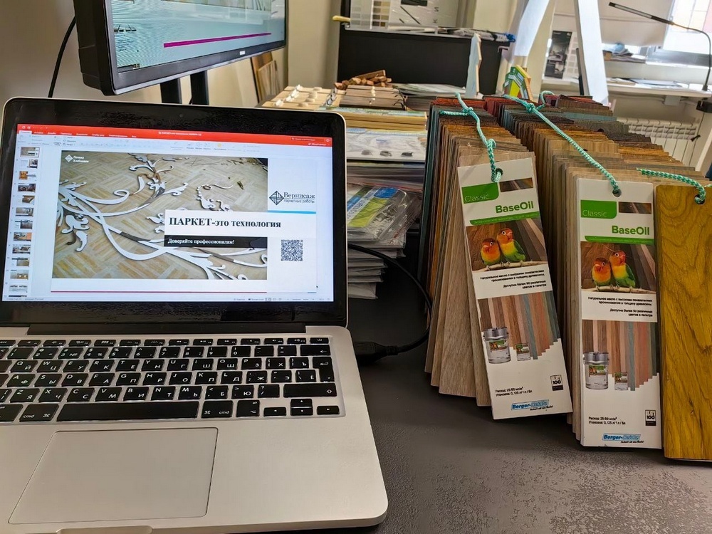 Если это паркет новый, то проще всего, когда клиент приносит нам несколько плашек (желательно с разными текстурами). Из них мы сделаем небольшой щит, отшлифуем его так, как мастера это сделают на реальном объекте, и после этого уже на достоверном паркете делаем достоверные образцы.