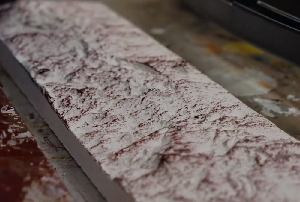 Но можно иначе использовать краску и сделать другое дизайнерское решение. Для этого берем тот же материал и ту же кисточку, но на этот раз проводим кисточкой по кирпичу легким нажимом, затрагивая только вершины поверхности. Легким нажимом на кисточку мы добиваемся вот такого результата.
