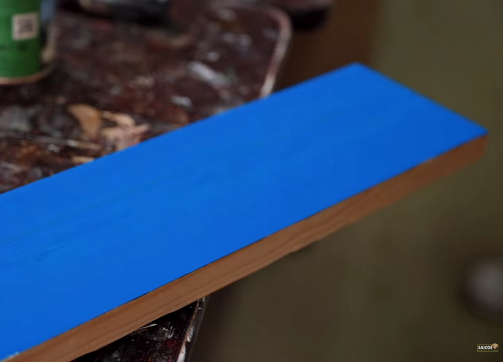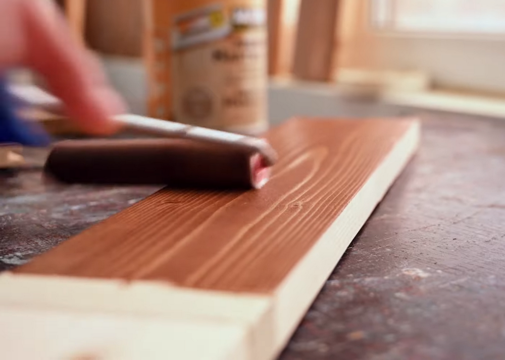 Напомним, как вообще мы делаем пробные выкрасы. Сначала открываем банку с краской, тщательно ее взбалтываем, перемешиваем и затем наносим валиком. Итоговый оттенок в большой степени зависит от шлифовки: под масло нужно обязательно хорошо отшлифовать древесину.