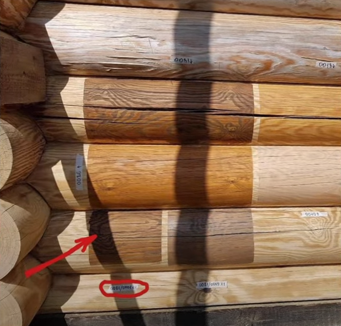 Следующий объект вели наши партнеры – компания «СтройГрадКлин», и там был интересный выкрас. Сначала на фасаде сруба сделали выкрасы готовых цветов лазури Saicos Holzlasur – брали арт. 0081 цвет Орех, арт. 0086 цвет Дуб и еще несколько древесных оттенков. Когда это все высохло, клиент сказал, что оттенки кажутся ему темноватыми, а хочется более светлые тона. Например, ему понравился цвет Орех, но было бы здорово сделать ее посветлее. Для этого мы решили размешать цвет Орех с бесцветным составом и таким образом осветлить его.