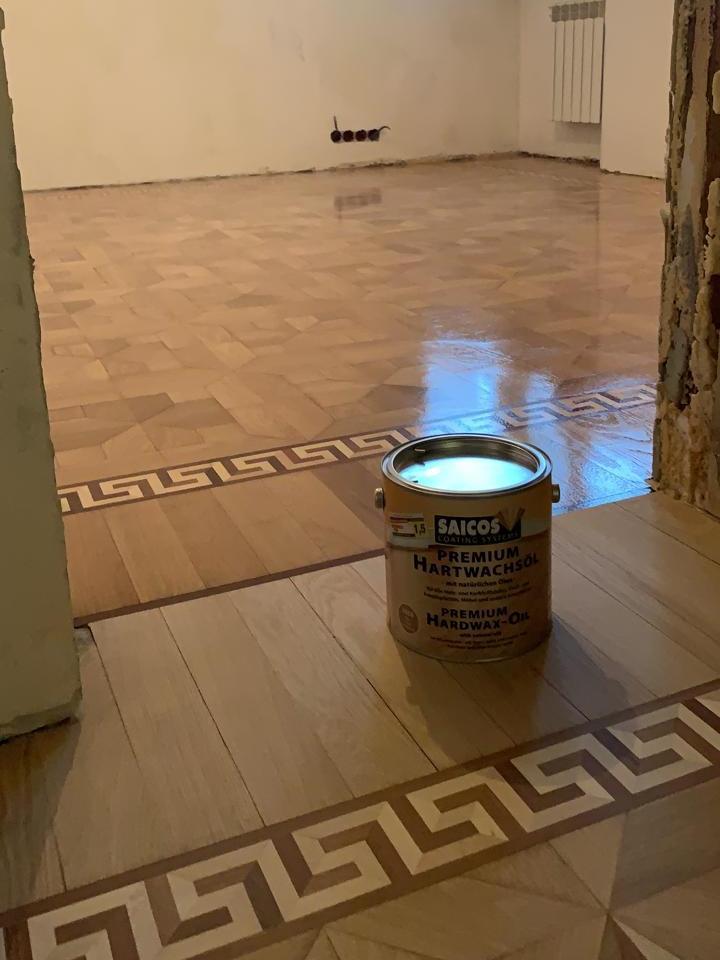- Масло с твердым воском – это покрытие, которое минимально создаёт плёнку. И здесь мы ходим непосредственно по паркету и тактильно чувствуем древесину, а не лаковую плёнку, и это совершенно другие ощущения.