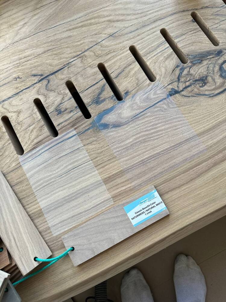 Ребята сделали несколько выкрасов именно беленым пигментированным маслом, а затем покрывали его также маслом с твердым воском в 2 слоя.