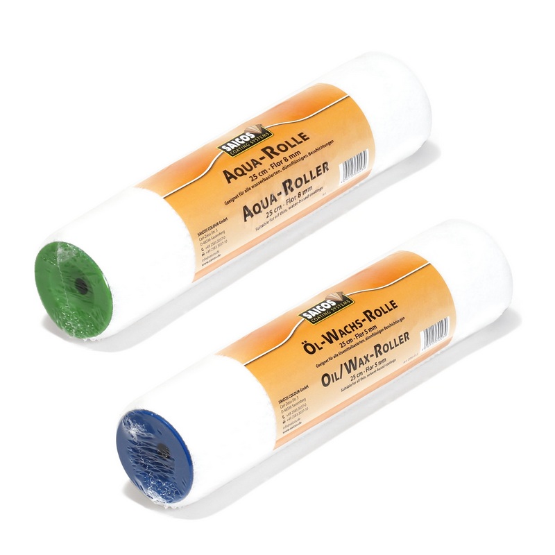 Мы настоятельно рекомендуем выбирать профессиональный инструмент того же бренда, что и само масло, так как он разработан производителем непосредственно под свои же составы. Например, завод Saicos разработал именно такую кисть, у которой не вылезает ворс, он разнодлинный, очень хорошо растягивает масло, кисть достаточно упругая и не одноразовая. После применения кисть можно помыть специальным очистителем Pinselreiniger без бензола. У валика края обязательно должны быть скошены, чтобы он не оставлял полос. Высота ворса при нанесении масла с твердым воском должна быть не выше 5 мм, для лака – 8 мм.