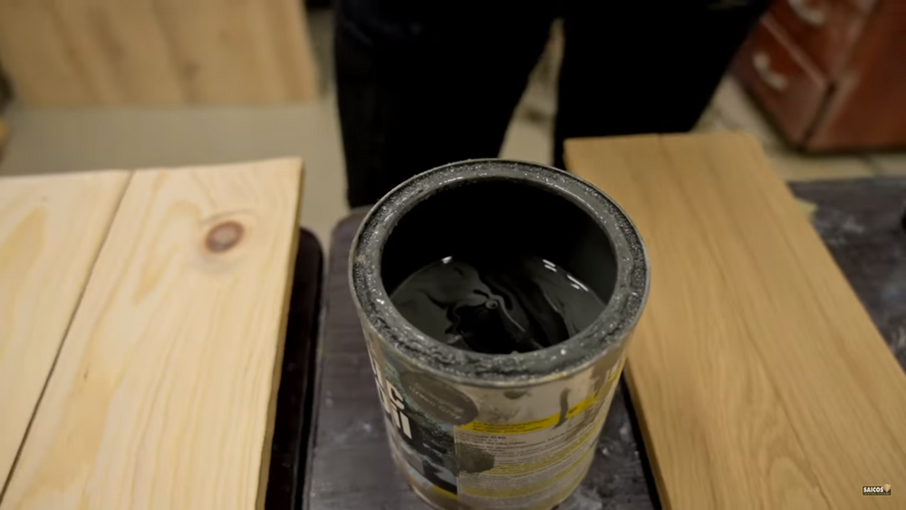 Когда мы вскрываем банку масла, то видим, что само масло находится сверху, а весь пигмент внизу. Перед нанесением обязательно нужно тщательно размешать масло деревянной палочкой или специальным миксером на малой скорости. Просто взболтать банку в руках мало.