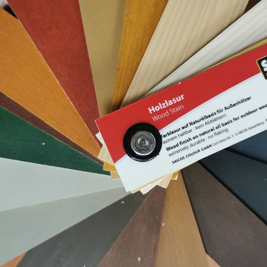 Лазури – это лессирующие (полупрозрачные) составы, которые отличаются от укрывных красок тем, что не перекрывают натуральную фактуру древесины, а наоборот позволяют подчеркнуть ее. Если вам нравится древесный рисунок, то для наружной отделки деревянных фасадов, садовой мебели и других поверхностей мы рекомендуем защитную цветную лазурь Saicos Holzlasur.