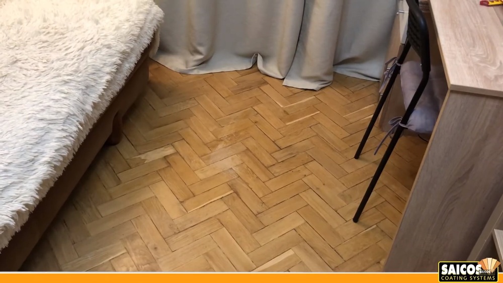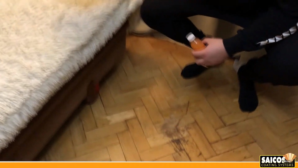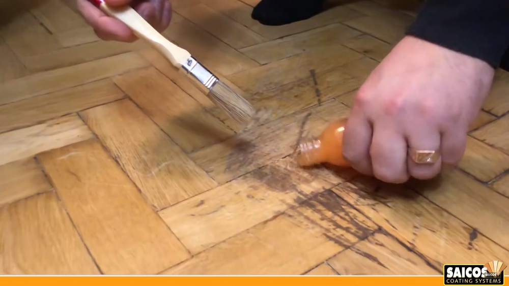 Для удаления царапин мы используем наше проверенное средство для очистки древесины Power Gel от Saicos. Вот пошаговый процесс, как мы работали: