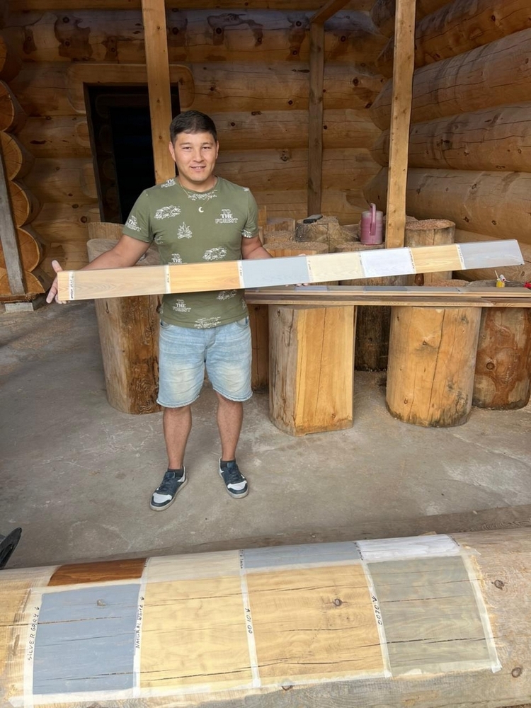 Нужно учитывать, что древесина также дает свой цвет, поэтому при подборе цвета в офисе на какой-то нашей доске нет никакой гарантии, что на древесине клиента на самом объекте оттенок будет выглядеть так же. Может получиться ситуация, что мы продадим масло клиенту, а он останется недоволен результатом, который получится на реальной древесине. Поэтому мы всегда рекомендуем делать выезд на объект.