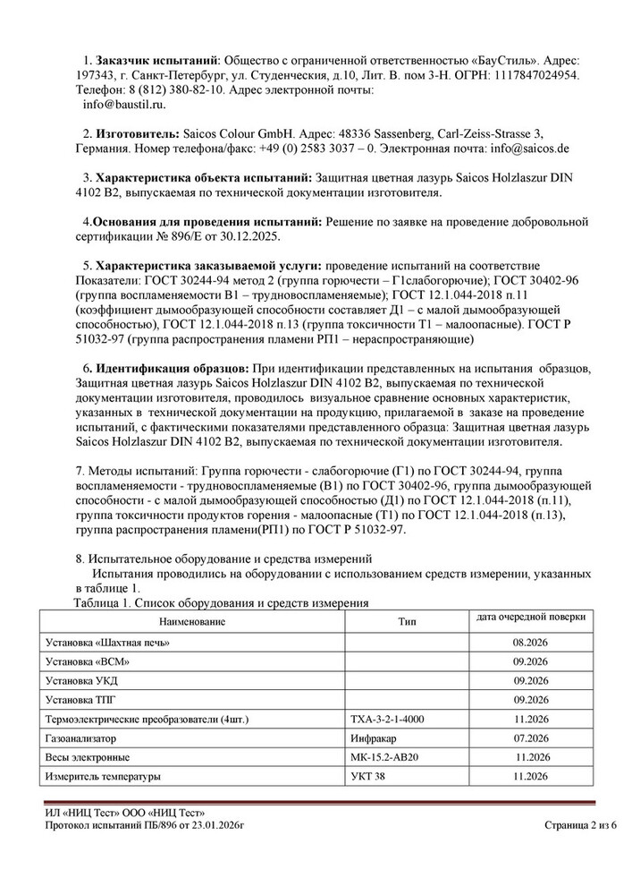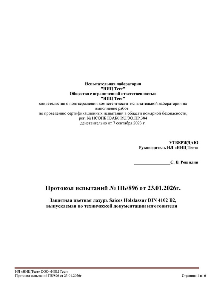 ВНИМАНИЕ! Цветная лазурь Holzlasur получила сертификат пожарной безопасности класса КМ1, подтверждающий следующие характеристики: