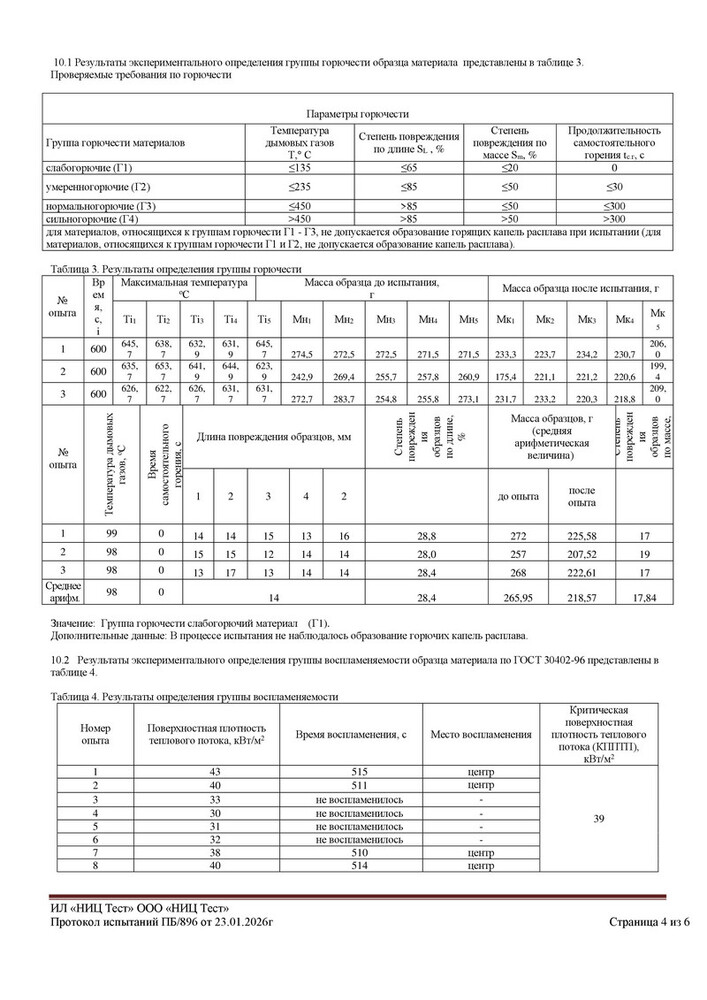 - Г1 – соответствует группе слабогорючих материалов.