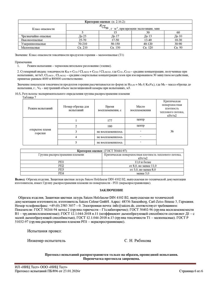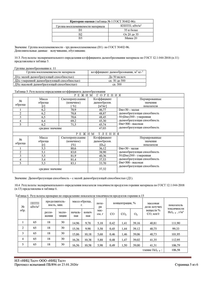 - Т1 – соответствует малоопасной группе токсичности продуктов горения.