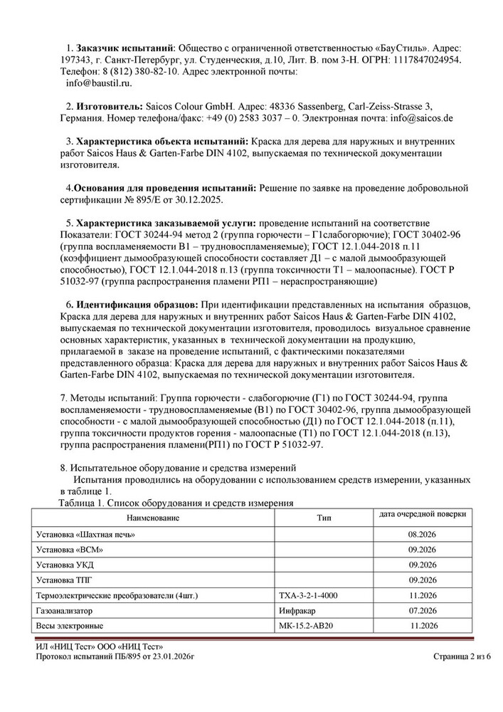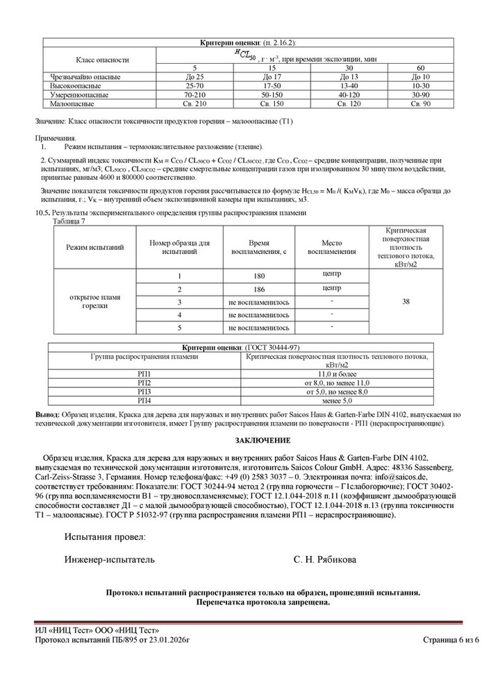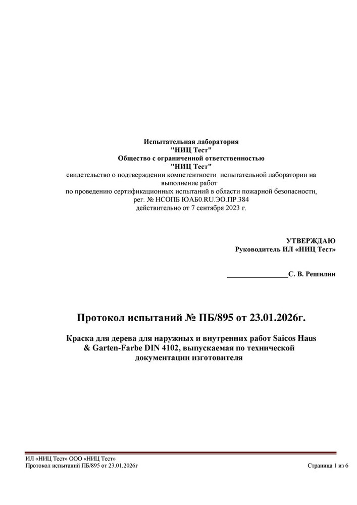 ВНИМАНИЕ! Краска Haus & Garten-Farbe получила сертификат пожарной безопасности класса КМ1, подтверждающий следующие характеристики: