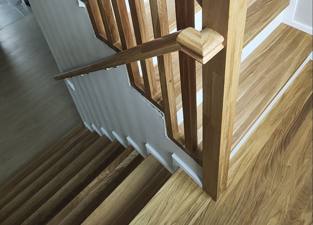 Покрытие:Ступени – масло с твердым воском Hartwachsöl, балясины – краска Haus&Garten-Farbe