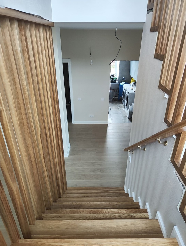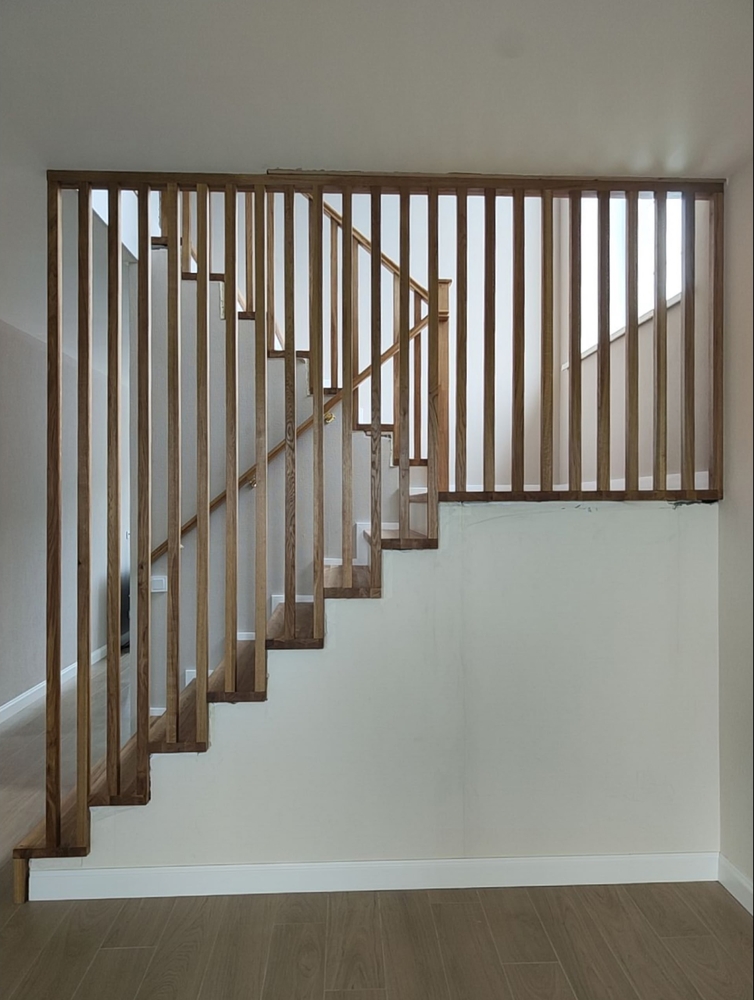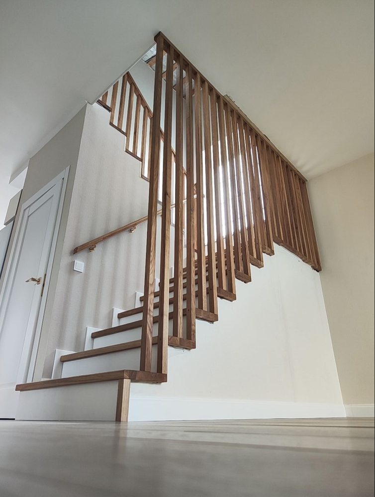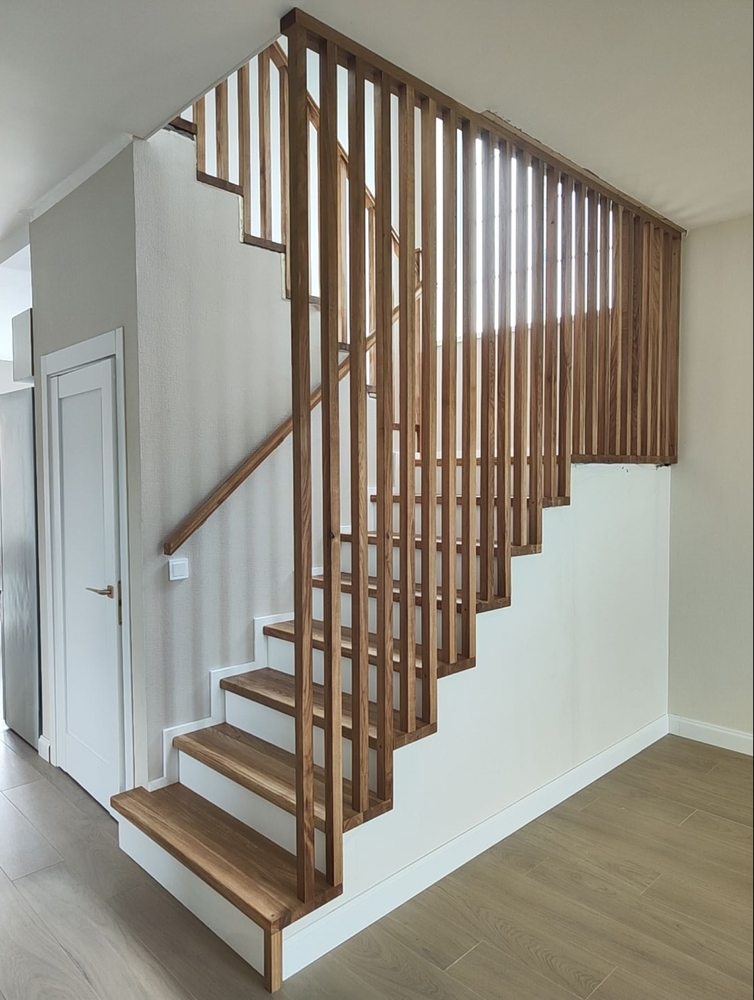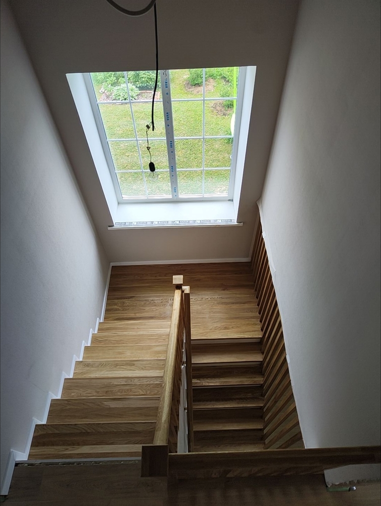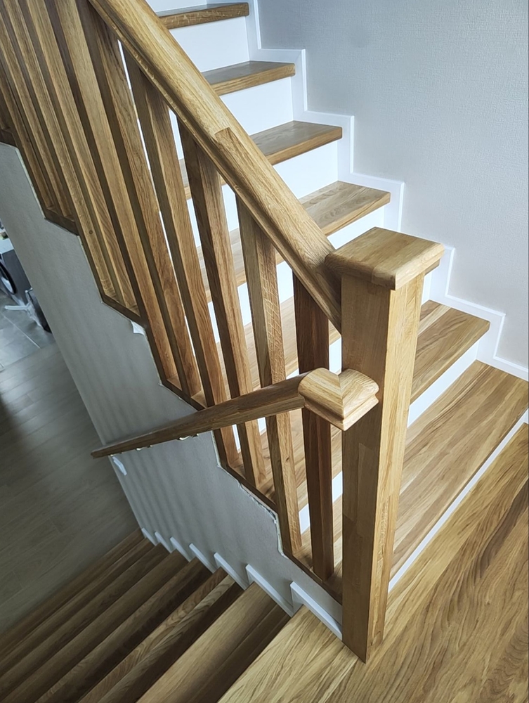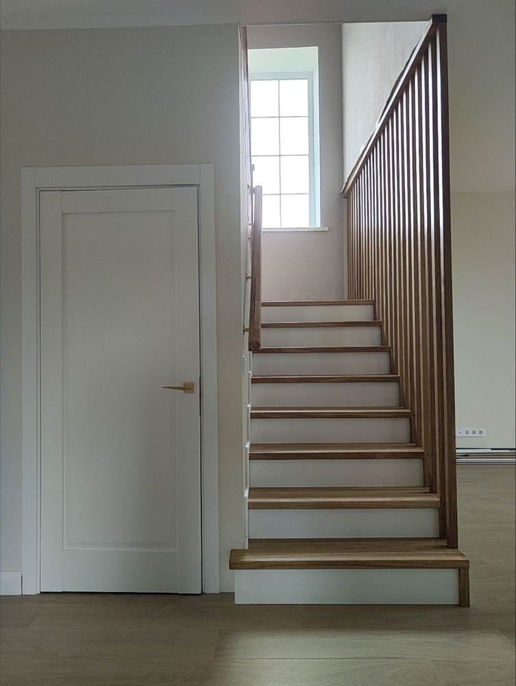 Покрытие:Ступени – масло с твердым воском Hartwachsöl, балясины – краска Haus&Garten-Farbe
