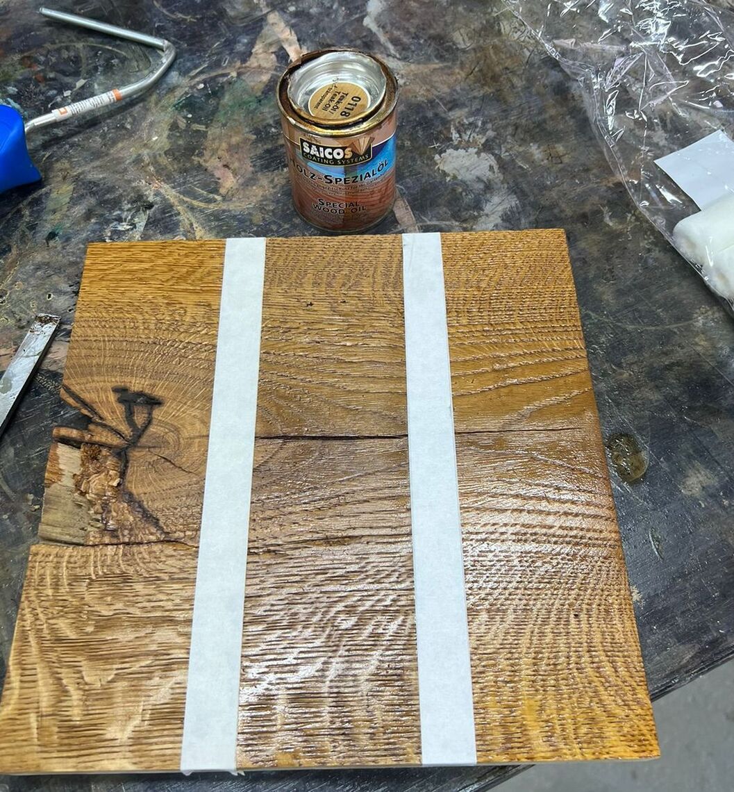 Подбор цвета для дерева – любимая услуга наших клиентов и наших сотрудников! Мы любим интересные задачи по выкрасам, и вот одна из них. Один из заказчиков запросил выкрас на дубовой доске с просьбой подобрать цвет под тик. Для подбора цвета мы использовали специальное террасное масло Holz-Spezialol, и вот какие выкрасы мы сделали.