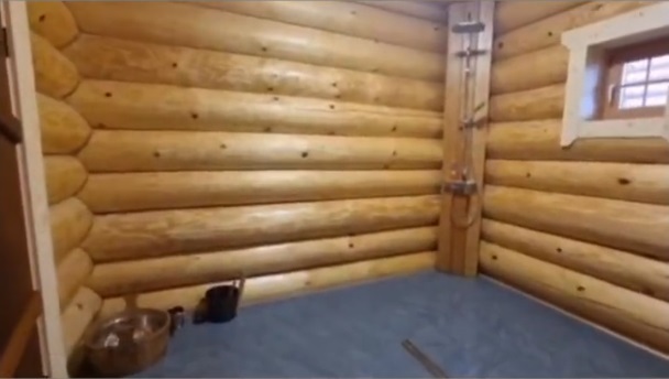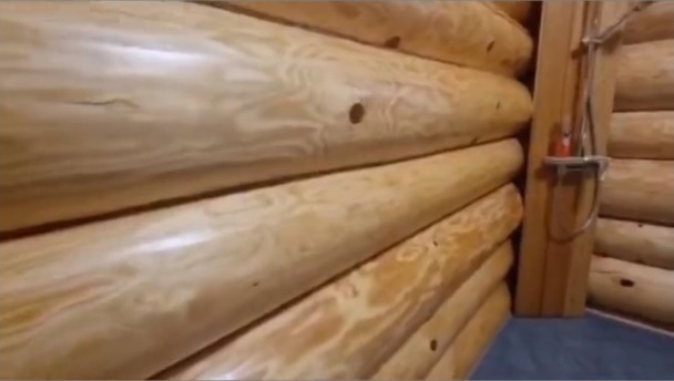 Видеозапись сделана в сентябре 2025 года (ниже представлены кадры из нее), и на ней мы отчетливо видим, что поверхность стен выглядит, как новая: равномерный цвет, защита сохранилась, древесина чистая и без повреждений.