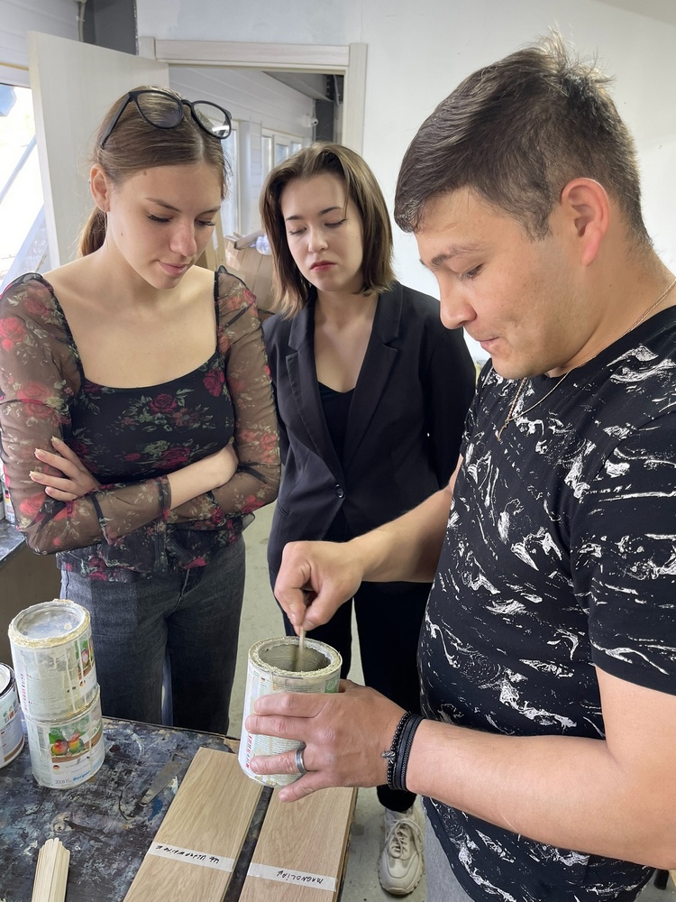 На текущей неделе в малярном отделе Saicos прошел мастер-класс по нанесению тонировки Berger Baseoil на древесину. Наши опытные специалисты Виктор Смирнов и Али Мусаев поделились своими знаниями и навыками с новыми членами команды.