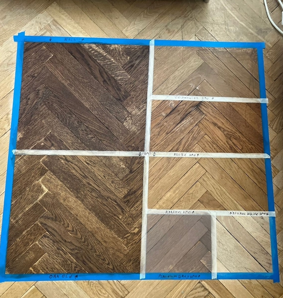 Несмотря на активный сезон наружных работ, мы продолжаем выезжает на объекты, где необходимо подобрать цвет для паркета. А мы это дело очень любим!