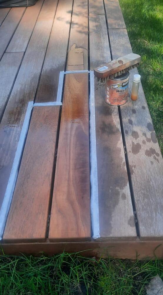 Каждый год по весне хозяева данной террасы приглашали специалиста для шлифовки и обновления данной террасы, уезжали подальше от пыли из своего уютного дома. Но в этом году увидели на нашем канале YouTube видео про наш гель и решили пригласить специалиста Saicos к себе в гости. Результат смотрите на фото. И для обновления террасы не пришлось ничего шлифовать, а просто помыть гелем и получить новая террасу!