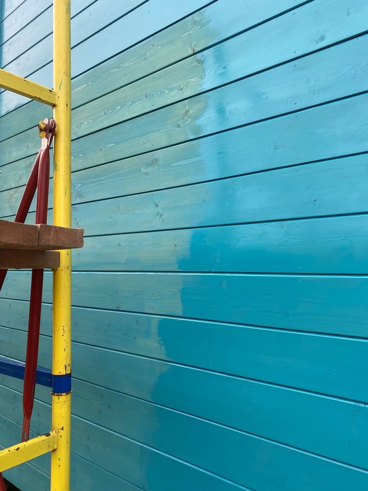 Мы нашли похожий цвет в палитре масляной краски Haus & Garten-Farbe для наружных и внутренних работ – это артикул 2506 Сейшельский синий. Он отлично подошел для покраски фасада.