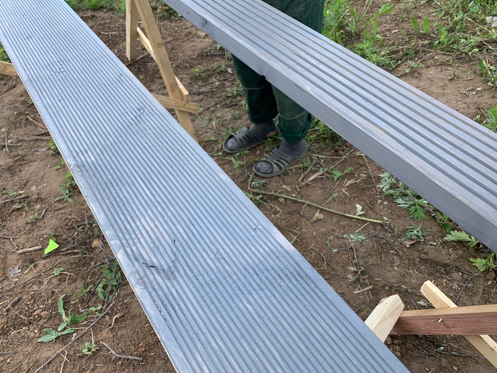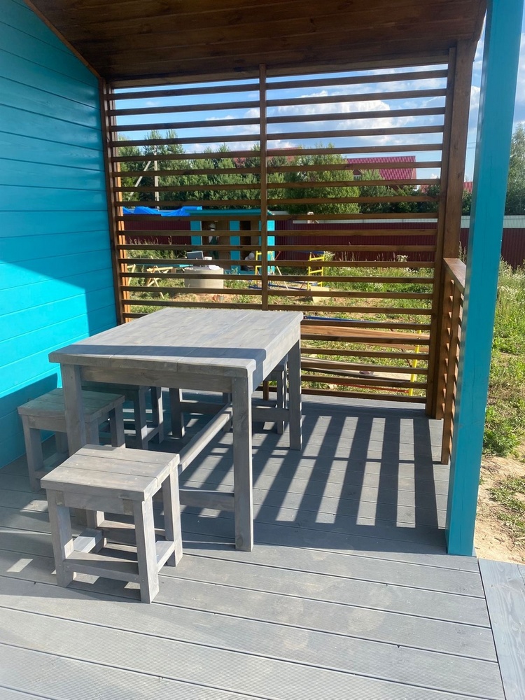 Дале оказалось, что требуется еще покрыть террасу, и мы вместе с клиенткой подбирали гармоничные оттенки для террасы, используя привлекательные референсы из интернета.