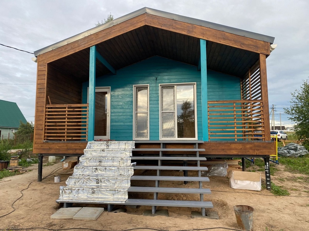 Этот объект оказался очень интересным для нашей компании: здесь мы выступали в качестве дизайнеров/декораторов. Клиентка приехала к нам в офис, чтобы подобрать цвет для фасада дома, который называется «Тиффани» – это бирюзовый цвет, который получил свое название благодаря американской кампании Tiffany & Co, выпускающей ювелирные украшения и другие товары.