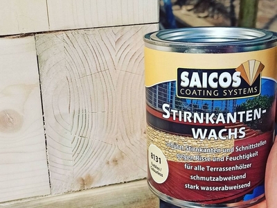 Чем закрыть торцевые спилы, чтобы туда не попадала влага, и древесина не растрескивалась? У Saicos есть решение – это торцевой воск Stirnkanten-wachs. Must-have для защиты доски на террасах и фасадах!