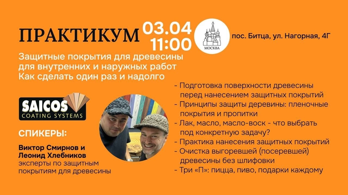 Приглашаем на практикум «Защитные покрытия для древесины для внутренних и наружных работ: как сделать один раз и надолго»!