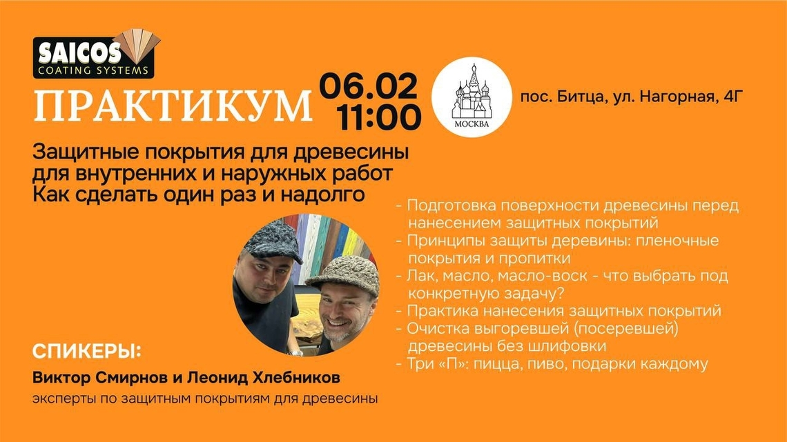 Приглашаем всех желающих на практикум «Защитные покрытия для древесины для внутренних и наружных работ: как сделать один раз и надолго»!
