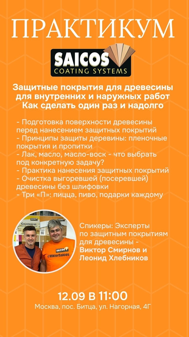 Приглашаем желающих на практикум по защитным покрытиям для древесины!